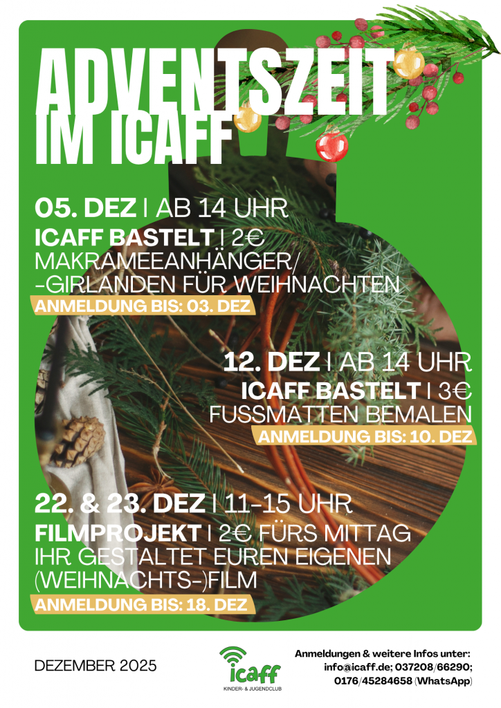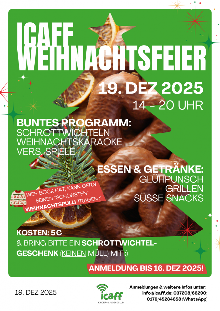 Du kannst uns bei Instagram (icaff.auerswalde) und auf WhatsApp finden. Dort gibt’s die aktuellsten Neuigkeiten 🙂