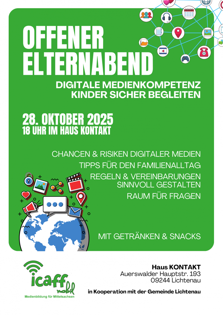 Ein großer Teil der Medienerziehung und Ausbildung von Medienkompetenz findet im Elternhaus und schon in der frühesten Kindheit statt. Hier werden Kinder geprägt und der Grundstein für eine gelingende Medienerziehung gelegt. Deshalb ist es uns ein Anliegen Eltern mit ins Boot zu nehmen, ihre eigene Medienkompetenz zu stärken, sie auf Medienwirkungen aufmerksam zu machen, sie in den Medienalltag ihrer Kinder blicken zu lassen und ihnen Methoden an die Hand zu geben um diese erfolgreich zu gestalten.
